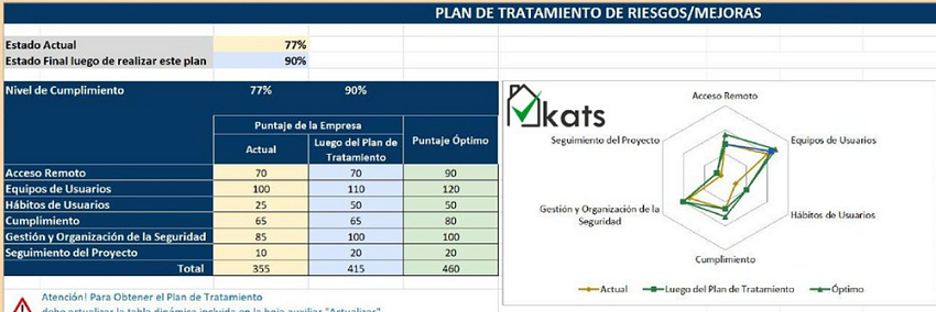 Como en cualquier análisis de riesgo y herramientas de autoevaluación, a partir de una serie de preguntas muy sencillas, KATS permite determinar el nivel de exposición de la organización frente a posibles ataques.