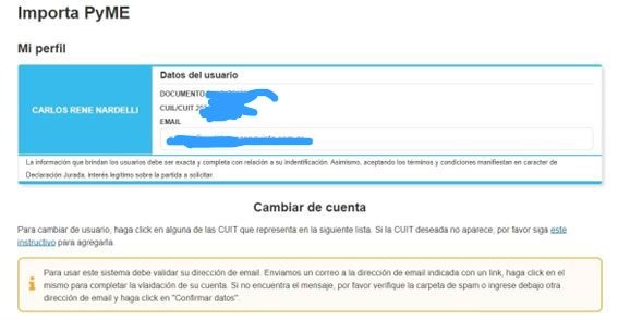 Los datos del solicitante que aparecen a continuación deben coincidir con la CUIT que realiza las importaciones. Para representar a la CUIT de una empresa o de otra persona física por favor consulte el instructivo de ingreso. Para confirmar la representación vaya a la sección de Mi Perfil en el menú de este aplicativo para cambiar la CUIT que está utilizando para realizar este trámite.
